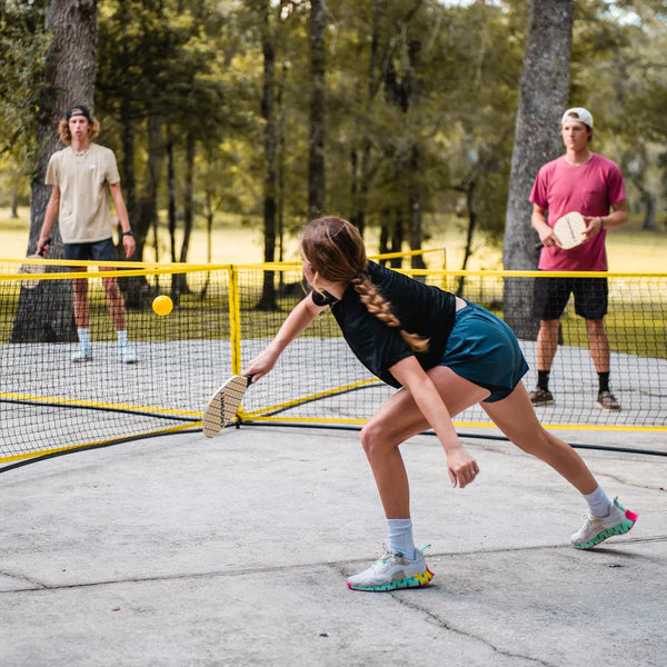 Transform any space into a pickleball arena with the CROSSNET Pickleball Set. This complete kit includes a 2-way net with 4-way add-ons, durable frame, four paddles, and two pickleballs. Whether you’re playing singles, doubles, or the exciting 4-way version, setup is quick and simple for endless hours of active fun. Built for versatility and durability, this set is perfect for families, friends, or competitive players looking to enjoy pickleball in a whole new way.