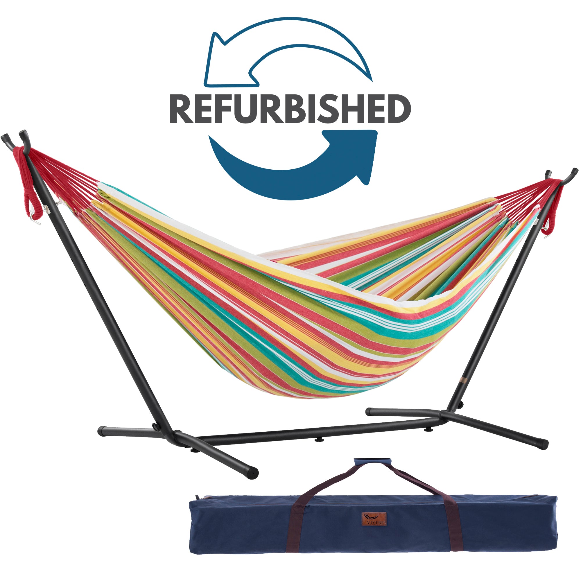Refurbished Double Cotton Hammock with Stand (9ft/280cm) - Salsa