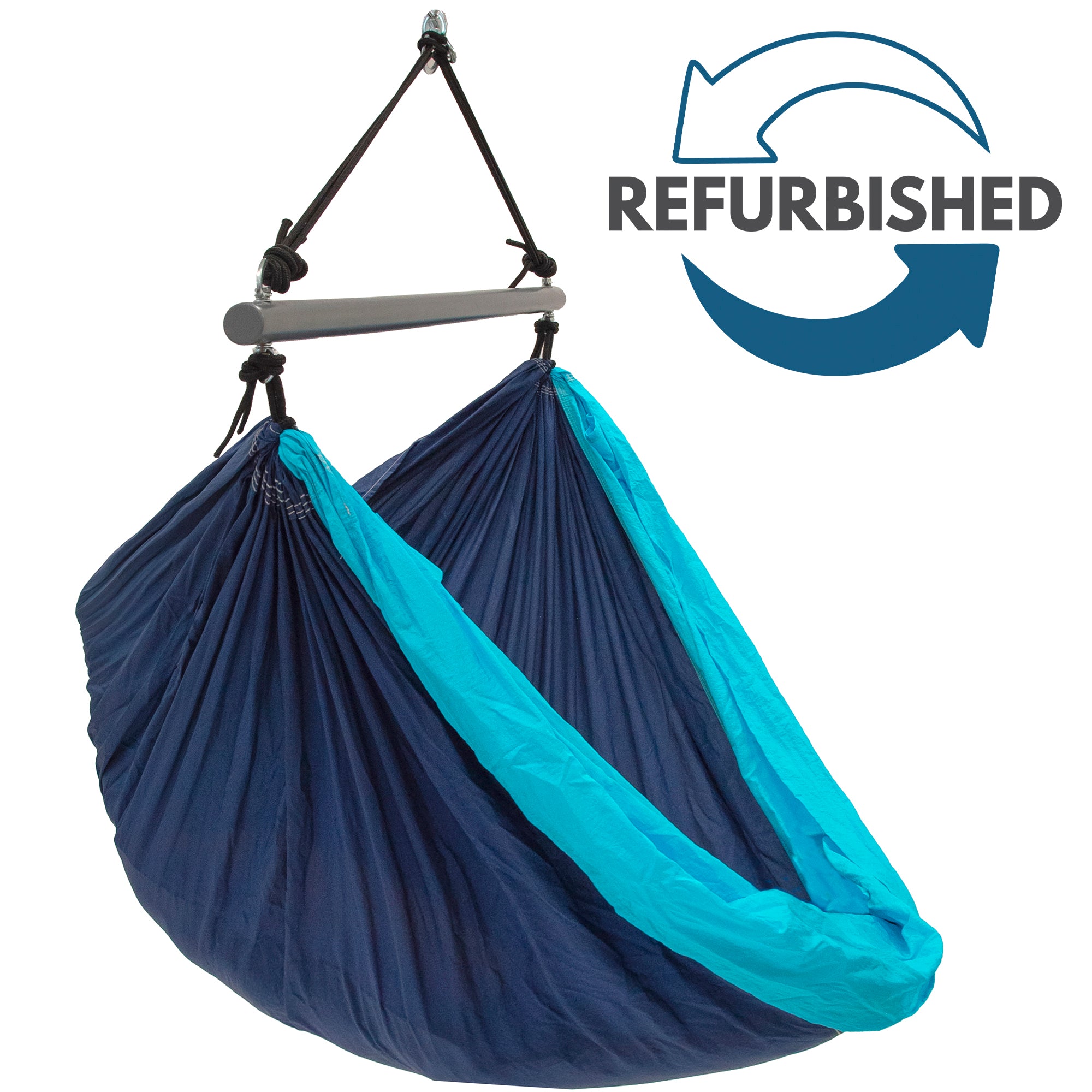 Refurbished Parachute Hammock Chair - Navy & Turquoise